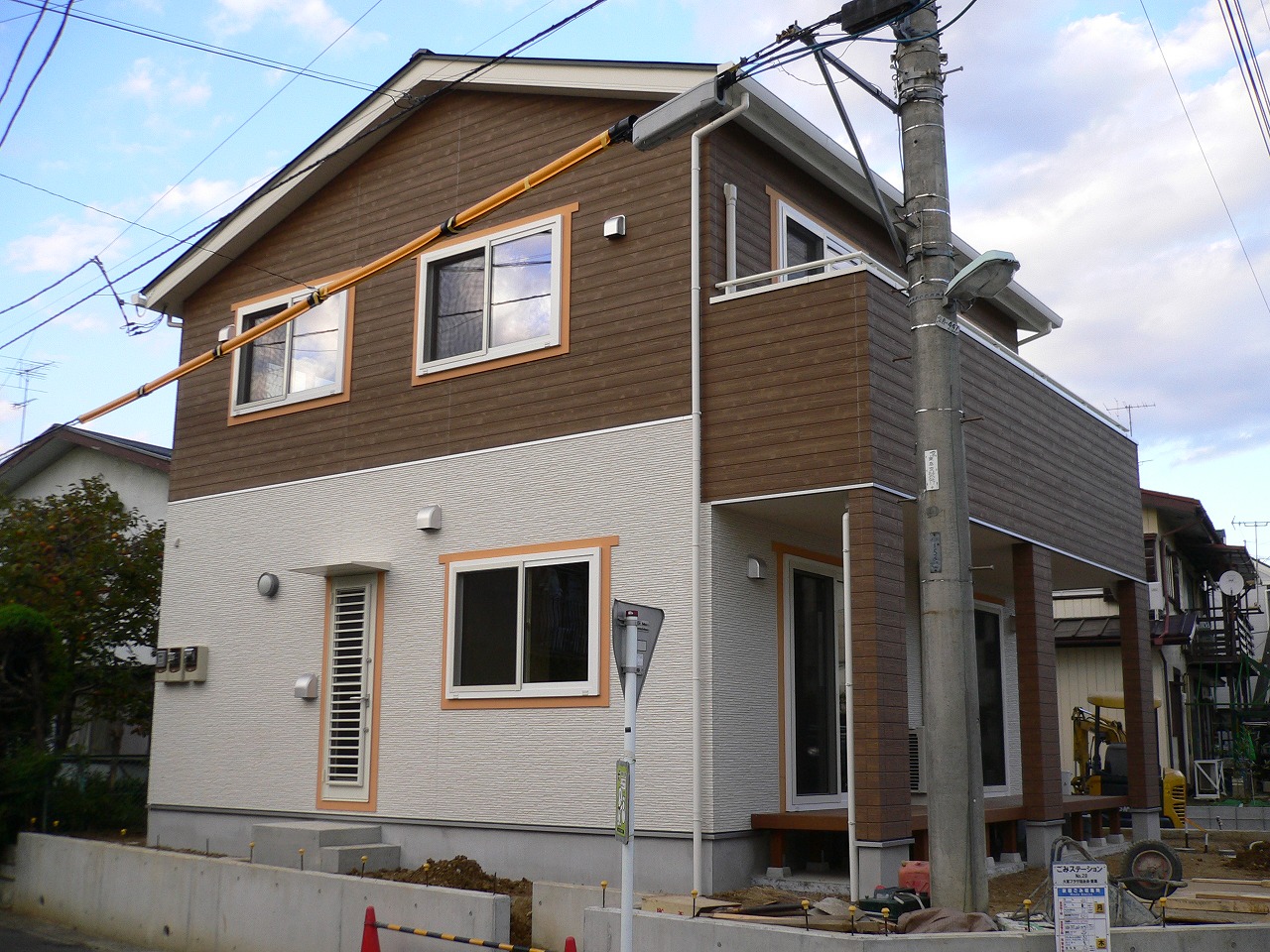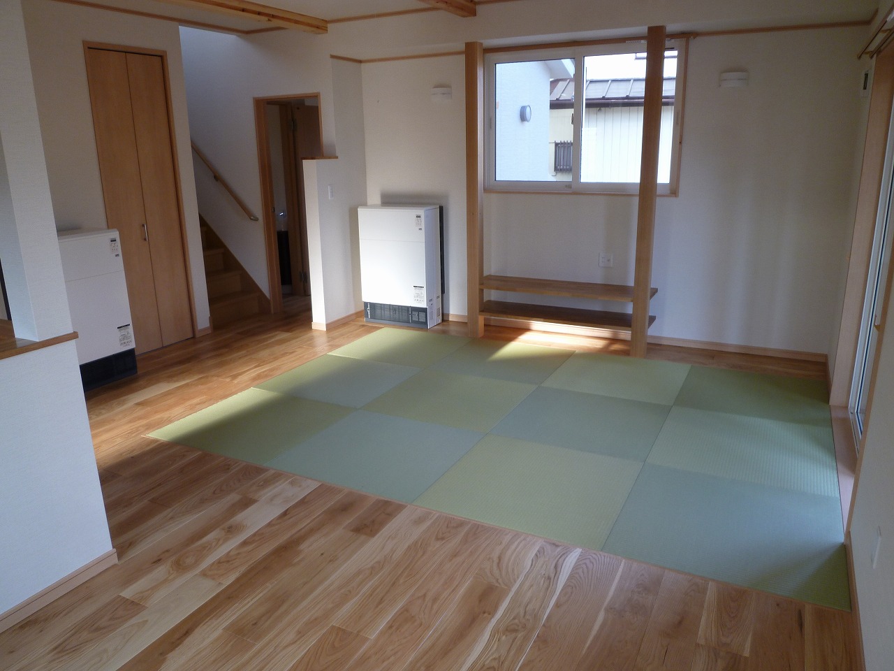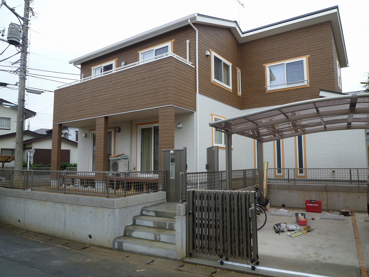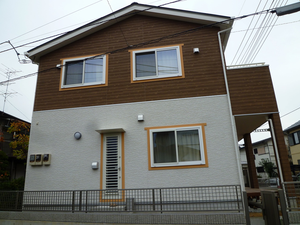 WORKS#NEW-BUILD さいたま市の家 木目調と白のサイディングを組み合わせたモダンな外観と、窓周りに異なる色のモールを付けることによって変化を出しました。 リビングの中に畳スペースを設けることでいつでも寝転ぶことができます。 1Fの床はオスモ社のオークを使用することにより重厚感を出し、 2Fはあたたかみを出す松のフローリングをはりました。 また、中央に小さな吹抜けを設置することにより、つねにお子様と会話をすることができます。