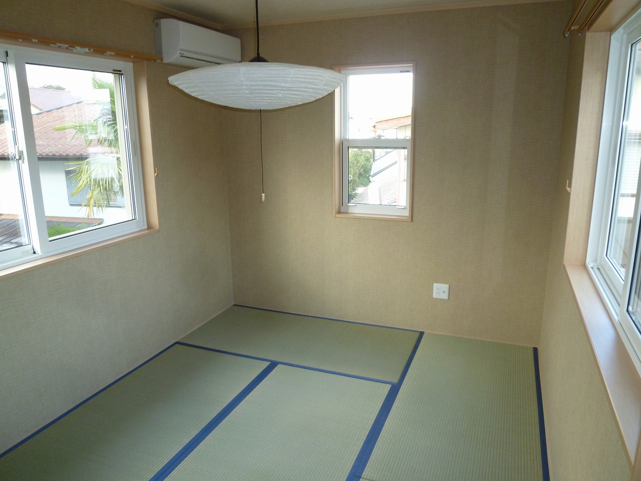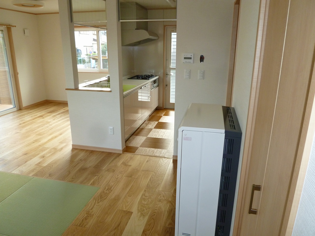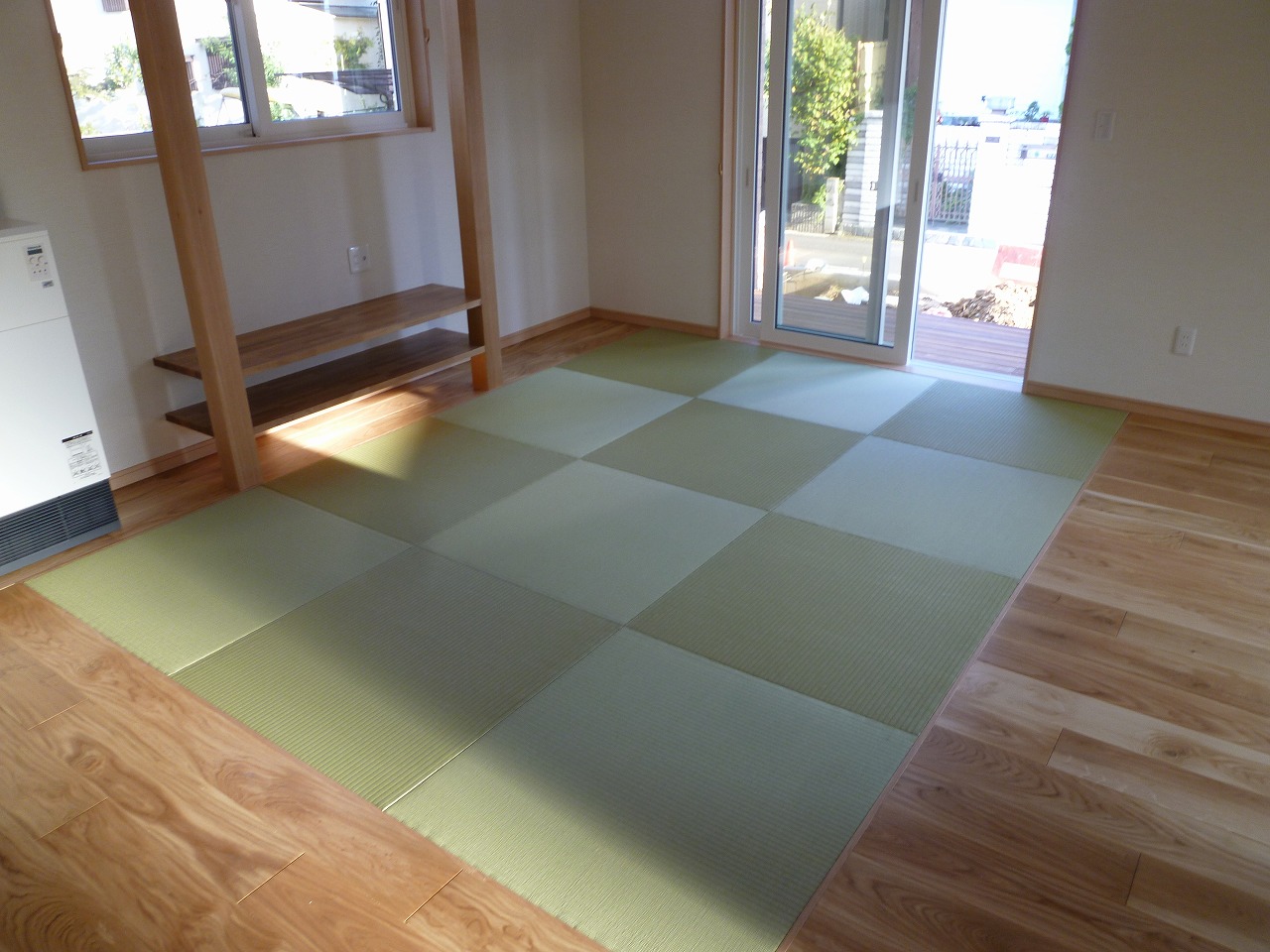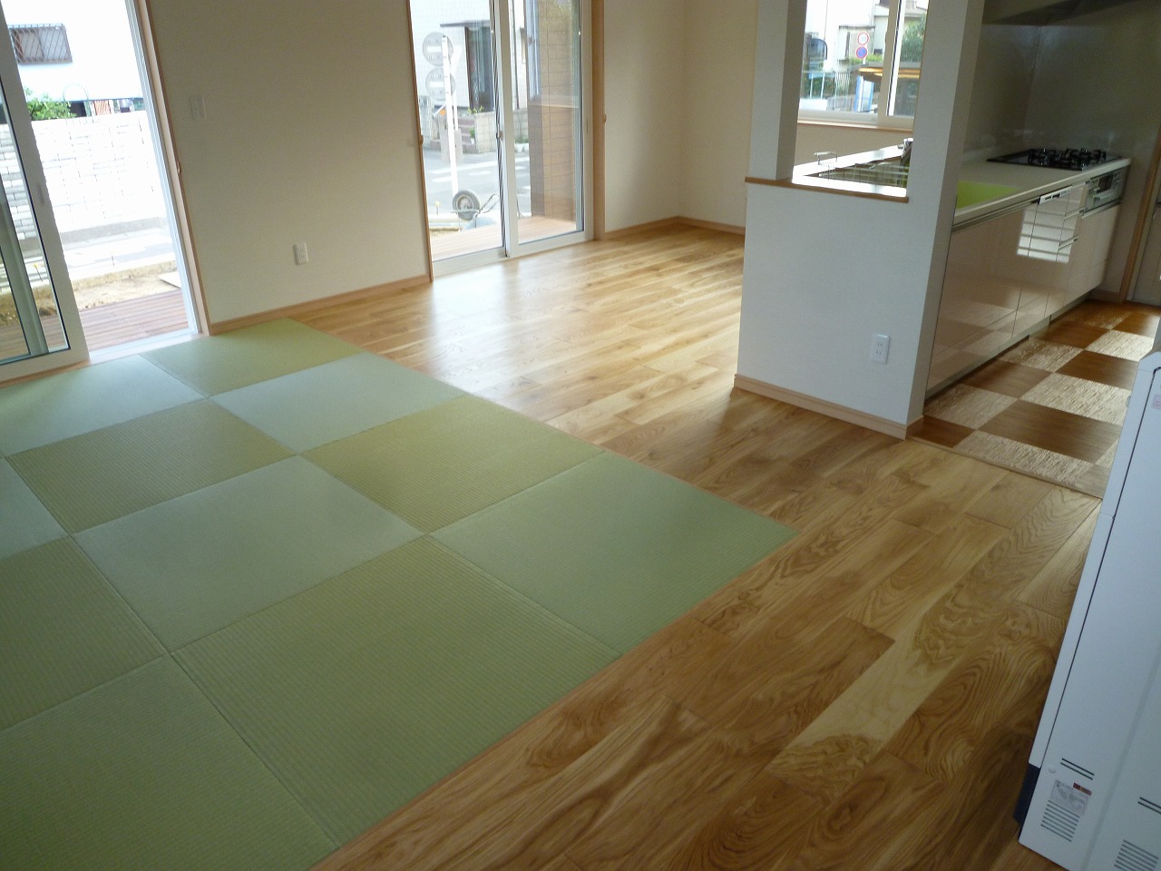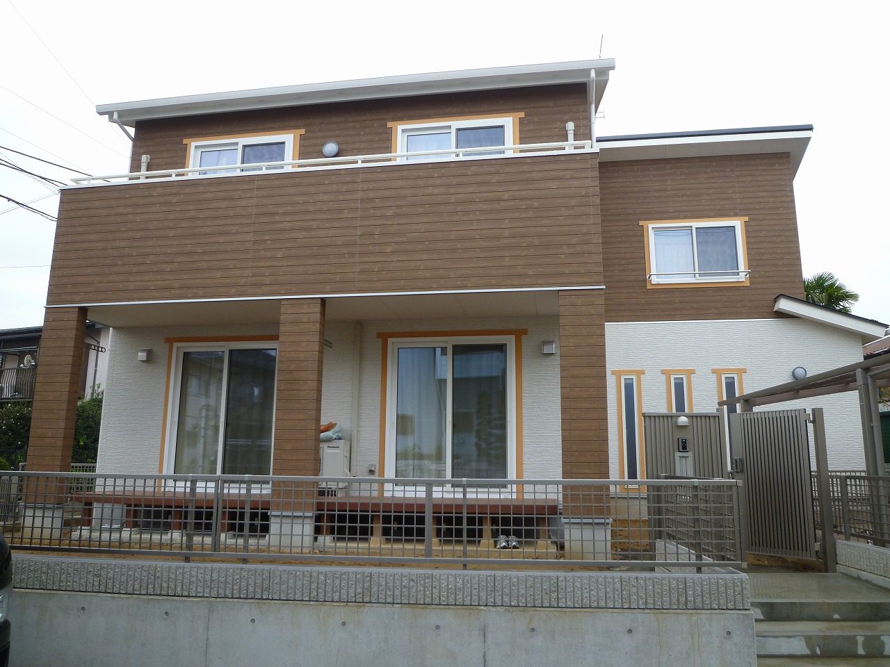WORKS#NEW-BUILD さいたま市の家 木目調と白のサイディングを組み合わせたモダンな外観と、窓周りに異なる色のモールを付けることによって変化を出しました。 リビングの中に畳スペースを設けることでいつでも寝転ぶことができます。 1Fの床はオスモ社のオークを使用することにより重厚感を出し、 2Fはあたたかみを出す松のフローリングをはりました。 また、中央に小さな吹抜けを設置することにより、つねにお子様と会話をすることができます。