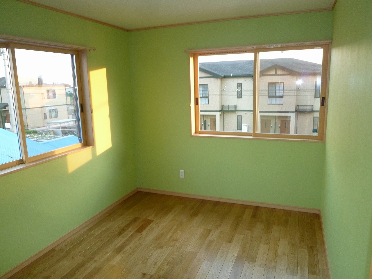 WORKS#NEW-BUILD カラフルな家 家族が仲良しな2世帯住宅です。プライベートな庭があり、思う存分バーベキューを楽しむことができます。 Building Data エリア伊勢崎市工法木造軸組工法